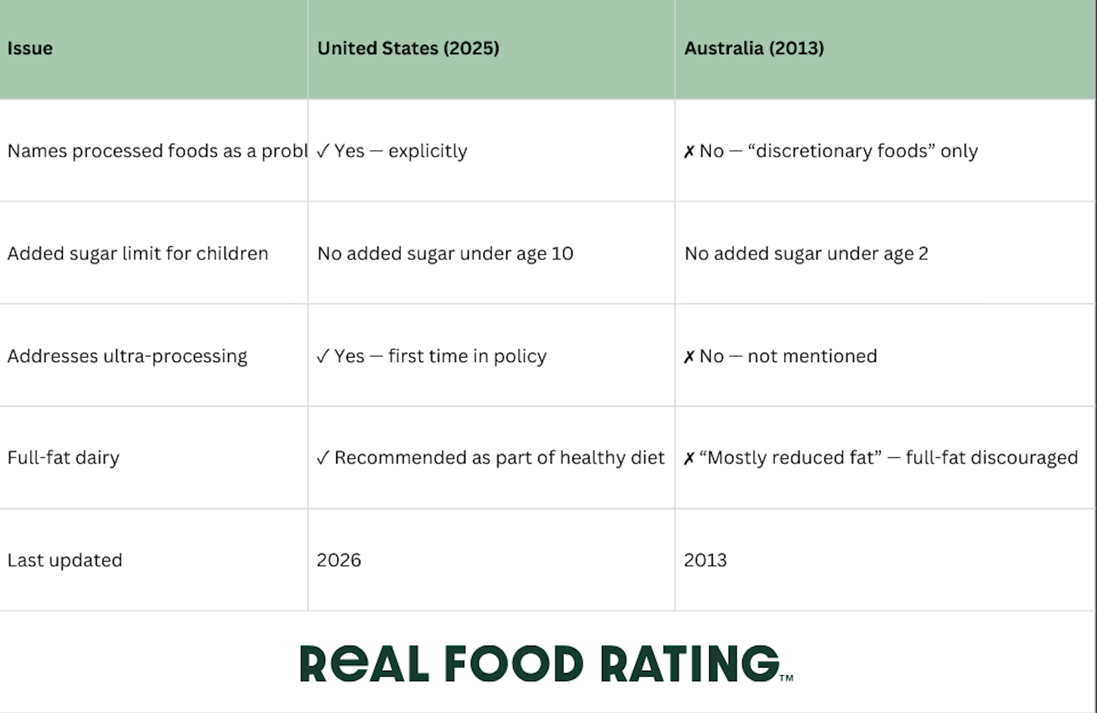 What the US has now acknowledged at a policy level, the Real Food Rating is working with Australian families to provide a clear and practical tools to empower them to make the best choices for their families.
