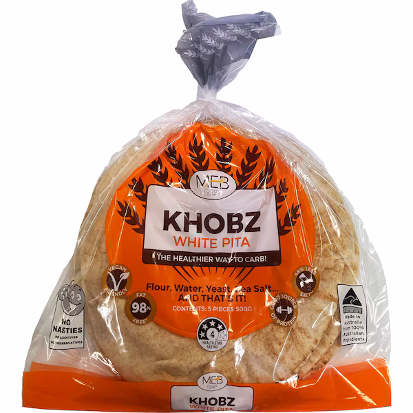 This is a classic, honest white wheat flour pita wrap, far removed from the highly processed sliced loaves and wraps that often crowd supermarket shelves. Made from just wheat flour, water, yeast, iodised salt, and the standa